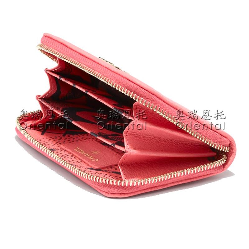 CHANEL/香奈儿 女包羊皮零钱包珊瑚色
