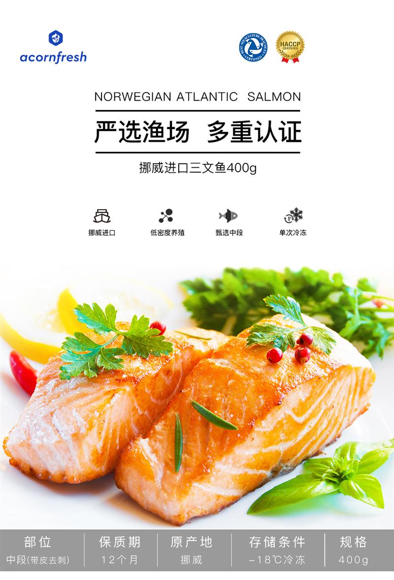 挪威三文鱼 带皮中段400g(大西洋鲑)